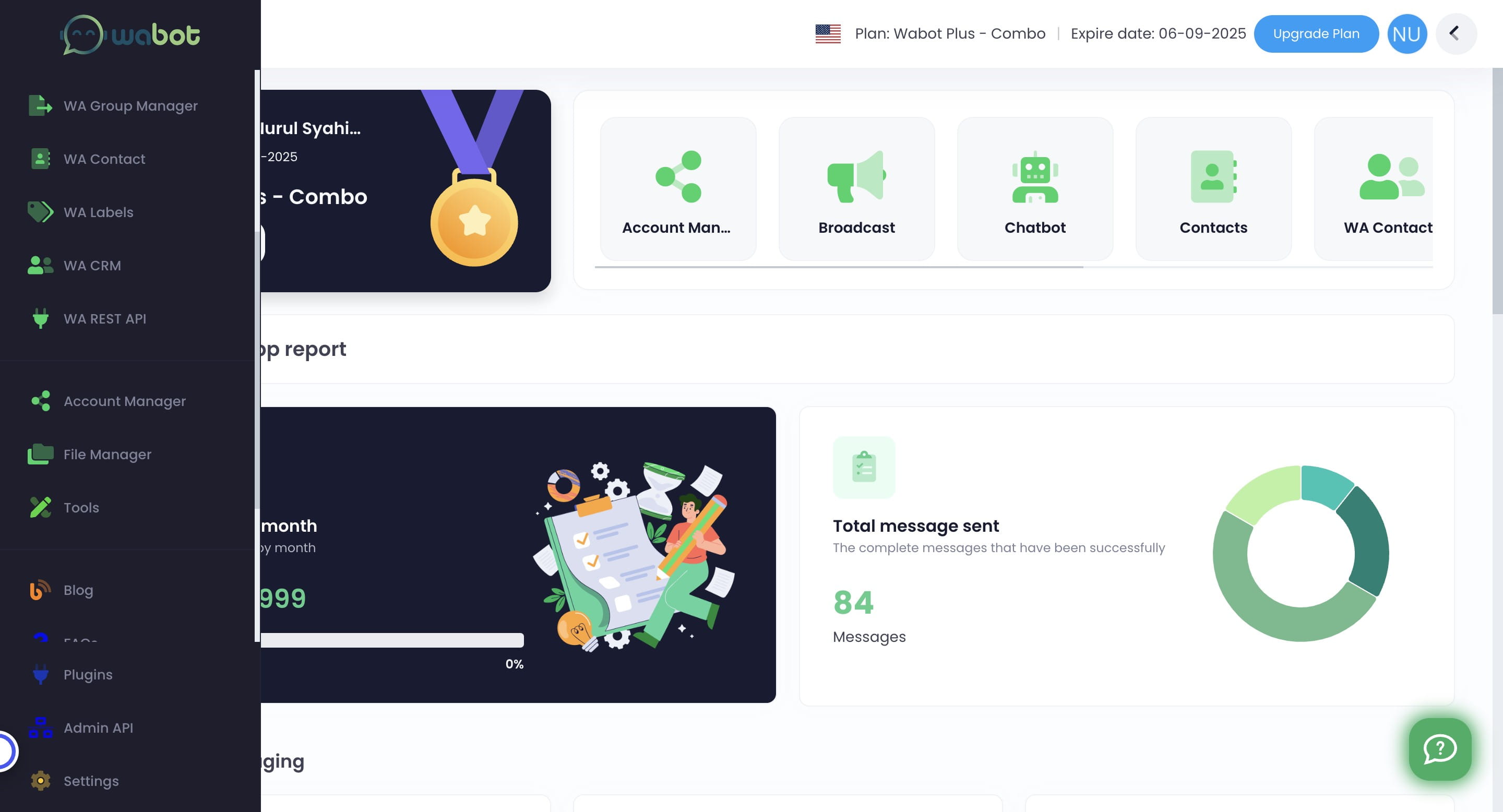 For blasting, the maximum size for each media is 1MB for Free trial account and Wabot Lite. Wabot Basic is 2MB and Wabot Plus is 10MB