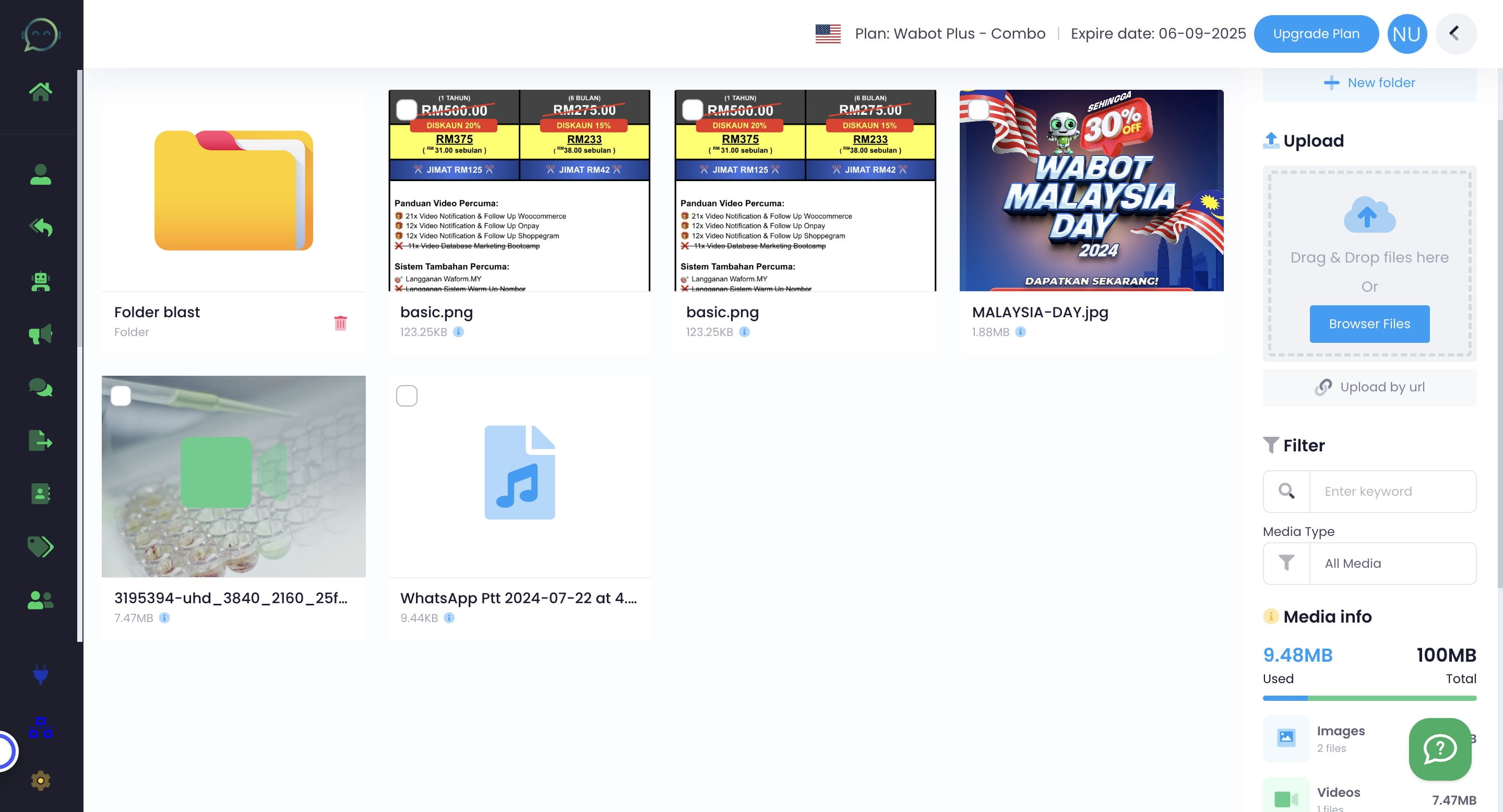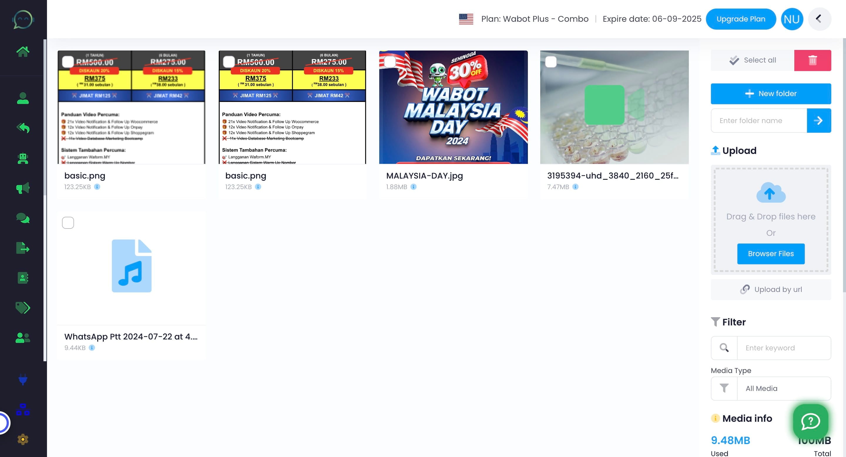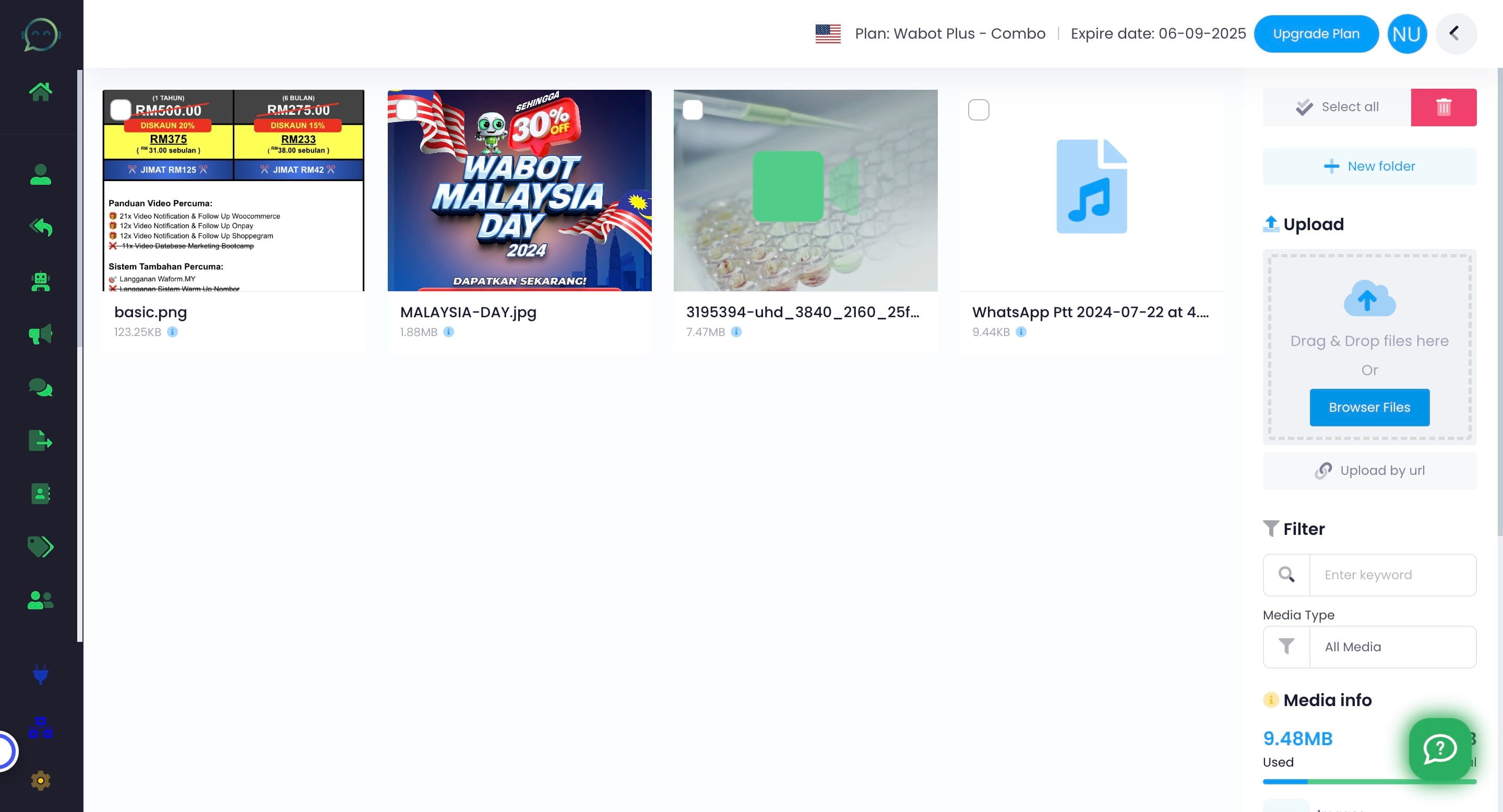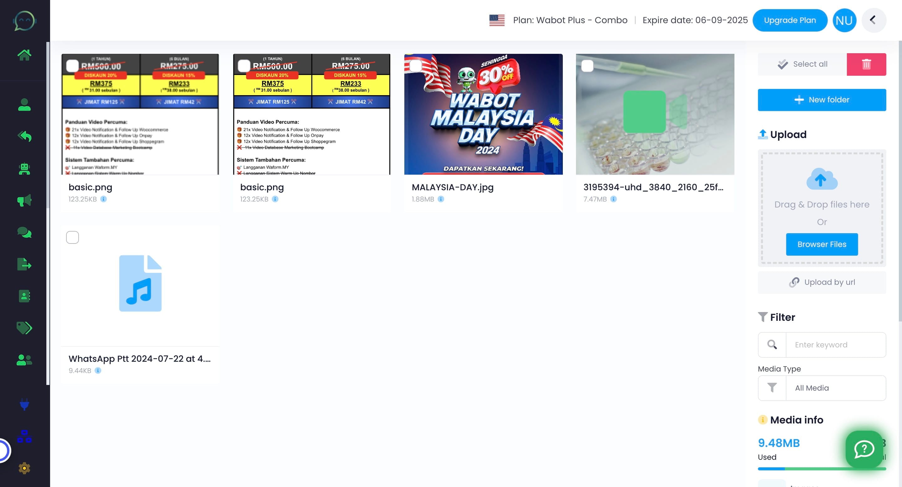 In File Manager, you can keep files such as images, videos, or audio for blasting and chatbot. The link needed to be put in the chatbot AI prompt can also be generated here.