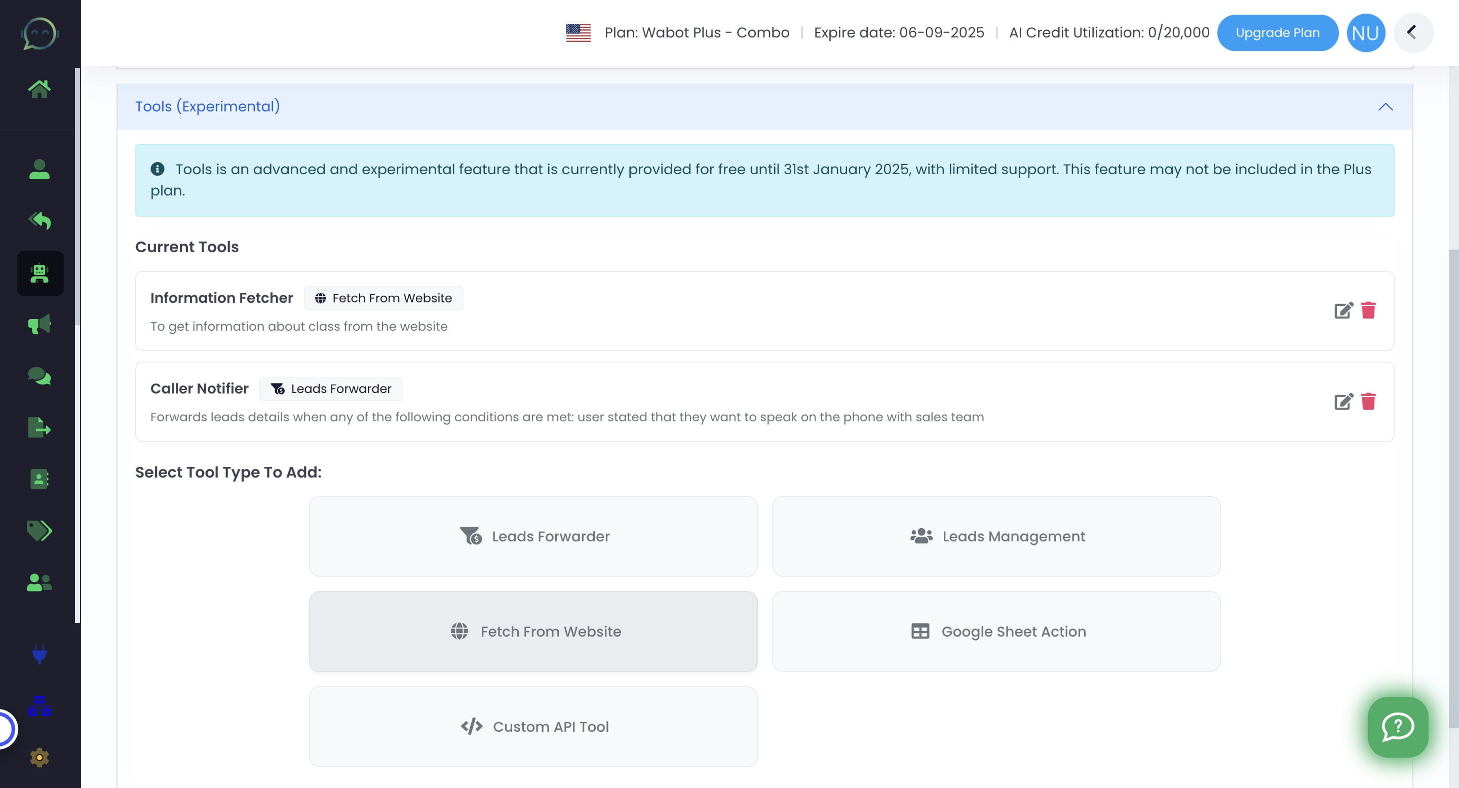 Don't forget to update prompt to give new instruction on using the tools. Click on "Wabot AI Model Setting"