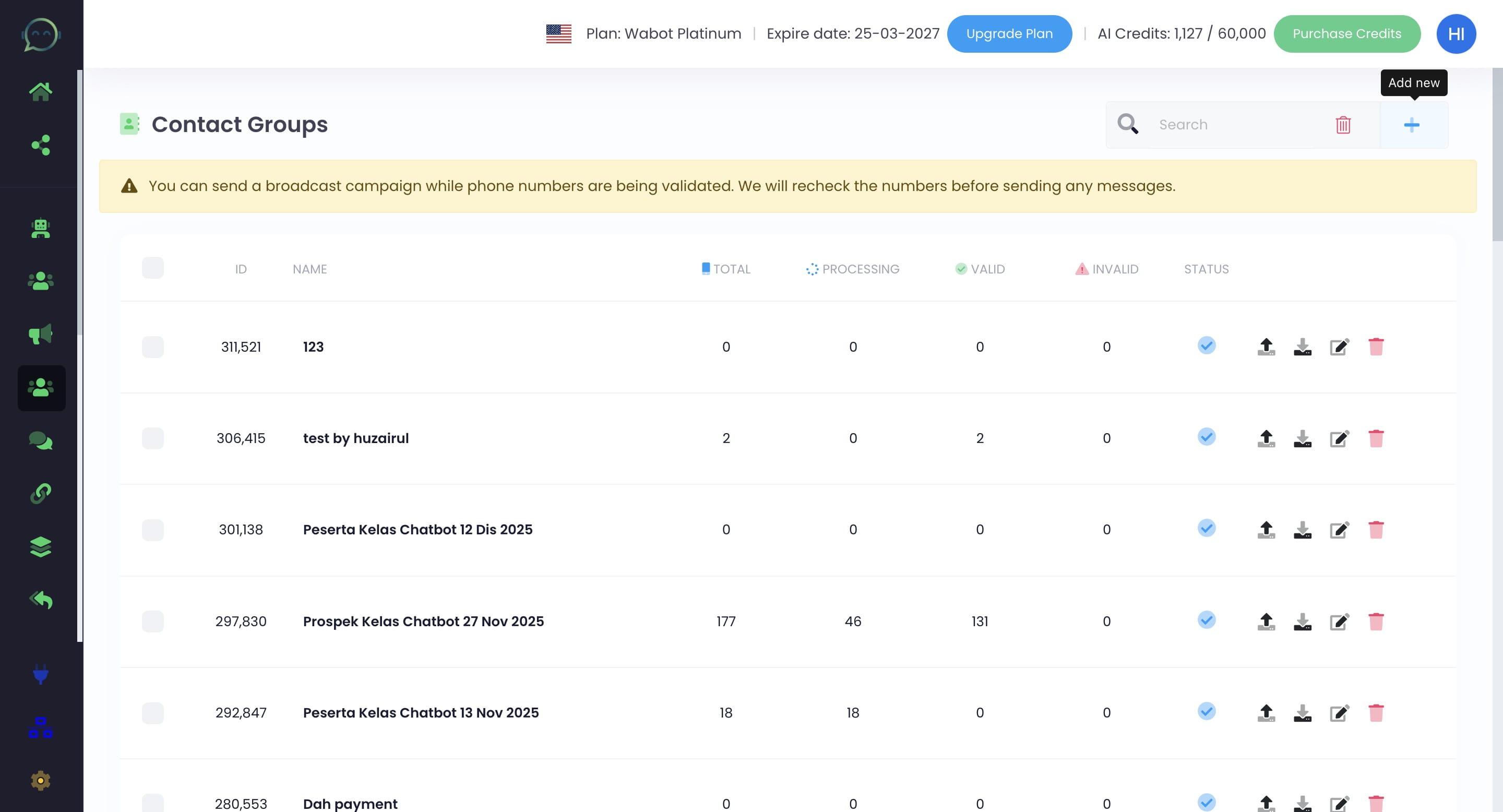 Click on "File Upload" to add contacts by uploading a file (CSV or Excel file)